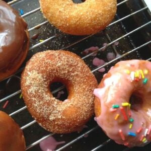 Donuts or doughnuts, however you spell them are easy to make at home with everyday ingredients. Here you’ll find 10 simple donut recipes, including baked, yeast, and no-yeast options.