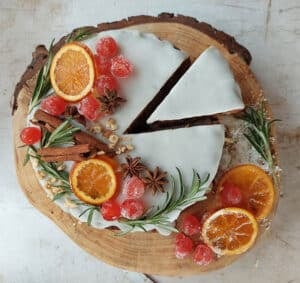 Soft and light but full of warm spice and dried fruit. This is your festive centerpiece, perfect with glaze and decoration.