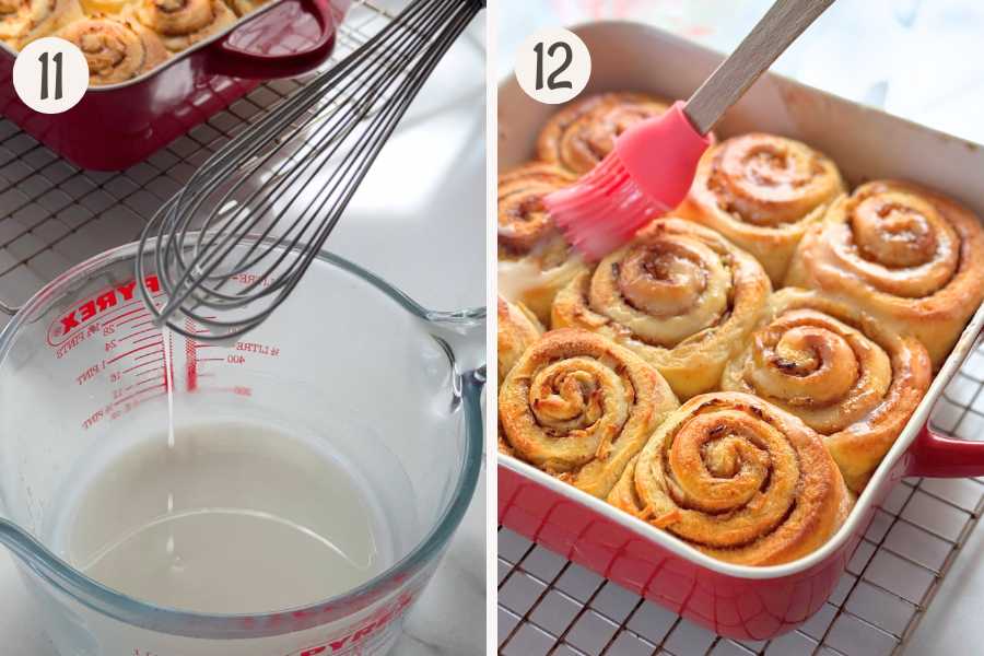 - After 5 minutes out of the oven, brush the warm rolls with glaze and let it set to a glossy finish.